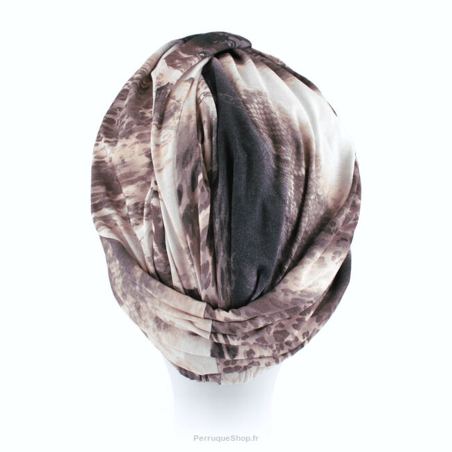Turban fabriqué à partir de matériaux extensibles, ce qui garantit un confort de port pendant de longues heures et élimine la sensation de pression ou de déplacement pendant les activités quotidiennes. La doublure en bambou ajoute de la douceur, aidant à garder la tête au chaud, ce qui en fait un excellent choix pour les jours plus froids. La connexion nodale décorative des bandes de tissu à l'avant du turban lui donne un caractère unique. Les plis supplémentaires sur la couche externe confèrent un volume optique, créant un effet subtil et élégant. La palette de couleurs du turban est composée de motifs animaliers délicats dans des tons à faible contraste, ce qui en fait non seulement un accessoire pratique, mais aussi un accent de mode.