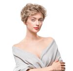 Le modèle porte une perruque de couleur 18/22.