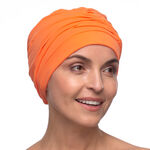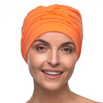 Turban de bain léger et confortable avec un drapé décoratif de tissu au niveau du front. Les problèmes de santé ou la période de convalescence ne doivent pas toujours signifier des restrictions d'activité. Le turban Aqua est un modèle conçu pour les visites à la piscine, les baignades en mer ou au lac. Il est idéal comme bonnet obligatoire dans une piscine intérieure ou comme protection de la tête par temps ensoleillé entre les entrées successives dans l'eau. Grâce à l'utilisation d'un matériau approprié, le turban est léger et sèche rapidement après avoir été mouillé. Il sera donc un couvre-chef idéal pour les excursions au bord de l'eau. Le turban est plissé sur toute la tête, ce qui lui donne un volume optique. La doublure douce assure un confort de port avec une peau sensible. La bande élastique cousue aide à adapter le turban à la forme de la tête et à le maintenir en place.