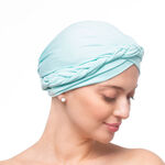 Le drapé autour de la tête évoque une tresse délicatement nouée, apportant une touche de charme et de douceur. Ce modèle uni et lisse est confectionné à partir de matières naturelles et extensibles. Il épouse la forme de la tête sans la comprimer, assurant un confort optimal tout au long de la journée.