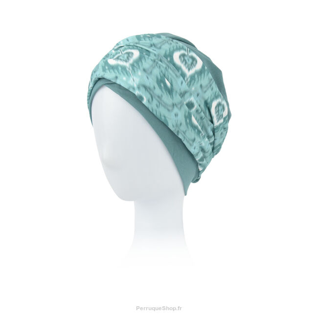 Turban classique destiné à un usage quotidien. Son tissu léger et aéré permet à la peau du cuir chevelu de respirer, même par fortes chaleurs. Un bandeau décoratif noué à l’arrière donne de la forme et du caractère à la coiffure.