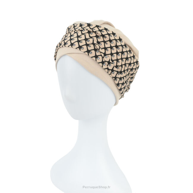Turban classique destiné à un usage quotidien. Son tissu léger et aéré permet à la peau du cuir chevelu de respirer, même par fortes chaleurs. Un bandeau décoratif noué à l’arrière donne de la forme et du caractère à la coiffure.