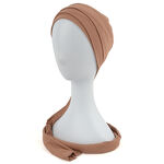Une longue écharpe cousue au turban apporte une touche originale tout en renforçant votre confort thermique. En l’enroulant autour de la tête, vous protégez mieux du froid tout en ajoutant du volume au turban pour un effet visuel élégant.