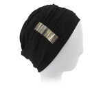 Hollywood est un turban léger, confectionné dans des matières respirantes, avec un empiècement décoratif orné de détails brillants sur un côté.