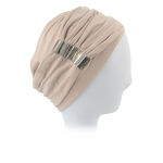 Hollywood est un turban léger, confectionné dans des matières respirantes, avec un empiècement décoratif orné de détails brillants sur un côté.