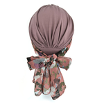 Turban Laura est un excellent choix pour les femmes qui aiment expérimenter avec la mode et apporter une touche de changement à leur look quotidien. Cet ensemble élégant se compose d'un turban et de deux belles écharpes assorties qui ajoutent une touche unique. Les motifs sur les écharpes ont été soigneusement sélectionnés pour s'harmoniser avec la texture lisse de la casquette. Grâce à cet ensemble, vous pouvez enrichir vos looks quotidiens de détails fascinants et d'accessoires créatifs. Le turban Laura est également très élégant porté de manière traditionnelle, sans décorations supplémentaires, mais il existe également la possibilité d'expérimenter avec différents styles et nœuds grâce aux deux écharpes. Cette polyvalence fait que le turban Laura s'adapte parfaitement à vos préférences et vous permet de créer une variété de looks stylés.