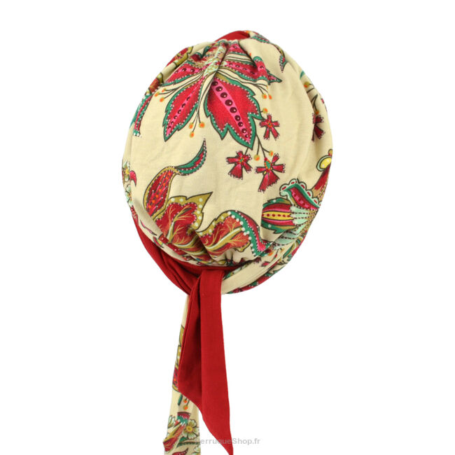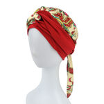 Turban à motifs en tissu léger, doux et agréable au toucher. Les longues bandes permettent de coiffer le turban de nombreuses façons selon ses envies.