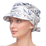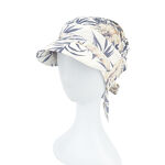 Turban à visière simple à coiffer, respirant et confortable. Idéal pour les journées ensoleillées. Un léger drapé sur le côté ainsi que de courtes bandes à nouer apportent au turban une forme originale et du volume visuel.