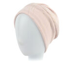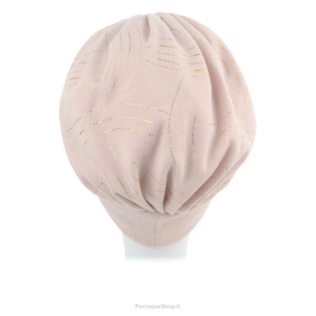 Turban deux pièces dans une couleur pastel claire avec des coutures dorées. Grâce à sa doublure, ce turban sera parfait pour les journées fraîches d'automne. Le bonnet est complété par un bandeau réalisé dans le même tissu et tressé comme une natte.