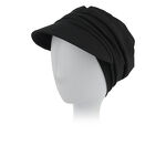 Turban léger et chaud à porter au quotidien. La visière protège contre les rayons solaires intenses. Des fronces décoratives tout autour apportent du volume à l’ensemble. Les matières extensibles permettent au turban d’épouser la forme de la tête sans la comprimer.