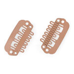 Petit clip symétrique pour fixer des ajouts capillaires – 1 pièce. Comporte des ailettes de fermeture arrondies (type vague) et un élastique de protection pour plus de confort et une fermeture silencieuse.