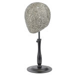 La surface de la tête est recouverte de cristaux décoratifs qui reflètent magnifiquement la lumière et dont la texture rugueuse permet à la perruque de rester en place sans que les cheveux et la base ne risquent de glisser et de se salir. Cette finition confère à l'ensemble un aspect glamour intéressant - ce porte-perruque sera un élément de design esthétique en soi.