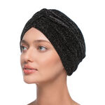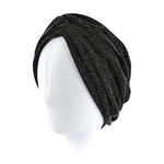 Le turban Crystal est le choix idéal pour les jours plus froids, offrant une doublure en bambou légère pour plus de chaleur. Fabriqué à partir de matériaux extensibles, il garantit un confort de port pendant de nombreuses heures, éliminant les craintes d'un éventuel glissement. Les bandes de tissu sont élégamment reliées à l'avant par un nœud décoratif et ajoutent au turban du charme et de la finesse. Les plis à l'arrière et sur les côtés du turban augmentent parfaitement son volume, ce qui attire l'attention et lui donne un caractère unique. Crystal se présente dans un profond noir, agrémenté de fines broderies de fil argenté brillant, ce qui lui donne un éclat unique et subtil. Ce n'est pas seulement un couvre-chef pratique pour les jours plus froids, mais aussi un accessoire de mode qui souligne l'individualité et l'élégance de la personne qui le porte.