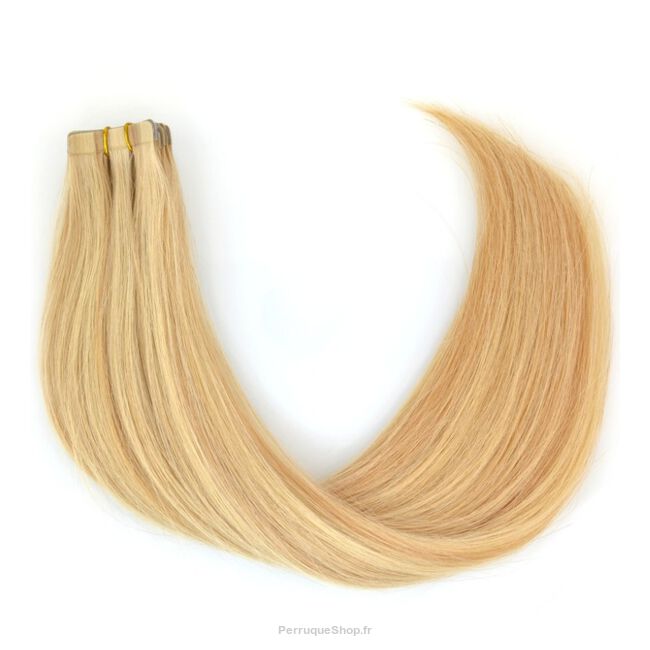Mèche unique avec rubande 4cm de largeur, fabriquée à partir de cheveux européens naturels de première qualité. Elle mesure 40cm de long, pèse 2,5g et est de couleur 613/24. La mèche est conçue pour le traitement de l'extension de cheveux en ruban ou en sandwich. Dans cette méthode, les cheveux sont placés sur des bandes autocollantes transparentes, qui sont collées sur la tête de manière à ce qu'une mèche de cheveux soit placée entre les deux bandes. La méthode sandwich implique de porter les extensions pendant quelques semaines avant de devoir retirer les bandes (les bandes peuvent également être remplacées de temps à autre, ce qui prolonge considérablement la durée de vie de l'ensemble de la coiffure) pour procéder à l'épaississement suivant des cheveux par bandes.