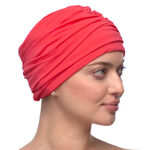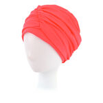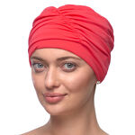 Turban de bain léger et confortable avec un drapé décoratif de tissu au niveau du front. Les problèmes de santé ou la période de convalescence ne doivent pas toujours signifier des restrictions d'activité. Le turban Aqua est un modèle conçu pour les visites à la piscine, les baignades en mer ou au lac. Il est idéal comme bonnet obligatoire dans une piscine intérieure ou comme protection de la tête par temps ensoleillé entre les entrées successives dans l'eau. Grâce à l'utilisation d'un matériau approprié, le turban est léger et sèche rapidement après avoir été mouillé. Il sera donc un couvre-chef idéal pour les excursions au bord de l'eau. Le turban est plissé sur toute la tête, ce qui lui donne un volume optique. La doublure douce assure un confort de port avec une peau sensible. La bande élastique cousue aide à adapter le turban à la forme de la tête et à le maintenir en place.