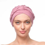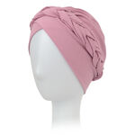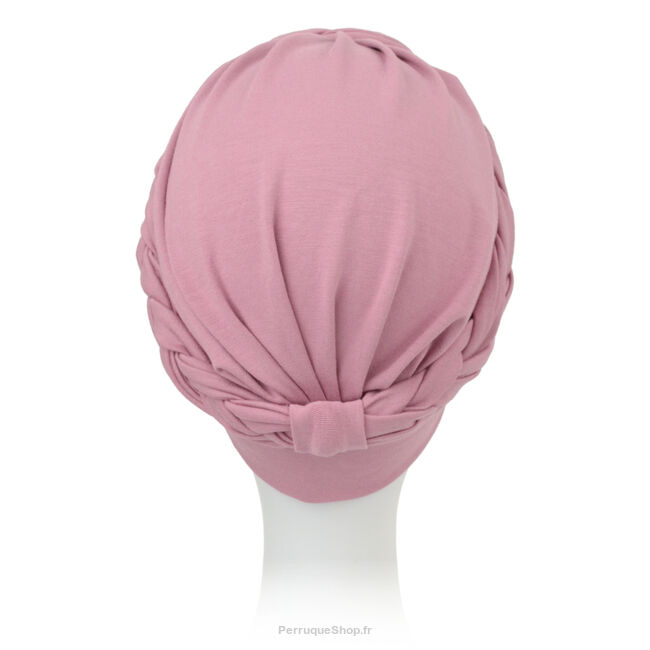 Le drapé autour de la tête évoque une tresse délicatement nouée, apportant une touche de charme et de douceur. Ce modèle uni et lisse est confectionné à partir de matières naturelles et extensibles. Il épouse la forme de la tête sans la comprimer, assurant un confort optimal tout au long de la journée.