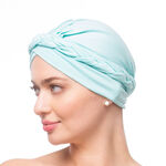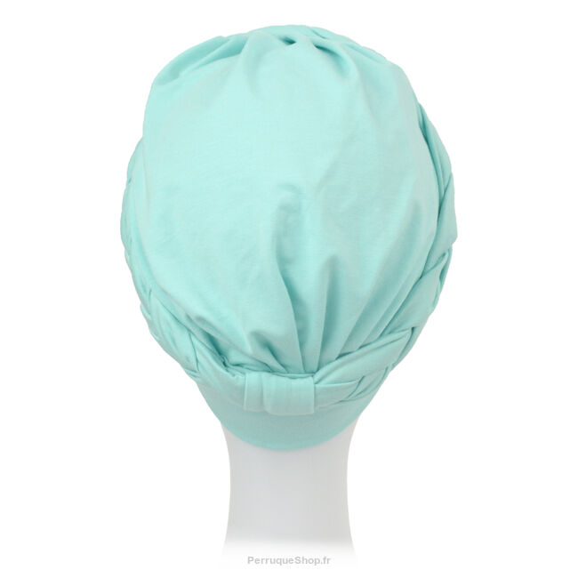 Le drapé autour de la tête évoque une tresse délicatement nouée, apportant une touche de charme et de douceur. Ce modèle uni et lisse est confectionné à partir de matières naturelles et extensibles. Il épouse la forme de la tête sans la comprimer, assurant un confort optimal tout au long de la journée.