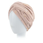 Le turban Riga est un couvre-chef incroyablement stylé et fonctionnel qui ne manquera pas d'attirer l'attention de chaque femme. Il reste bien en place sur la tête toute la journée, son apparence rappelle le style rétro, et il est en même temps très pratique. Le turban Riga se distingue par son motif et ses couleurs uniques, ce qui en fait un excellent complément aux tenues classiques et élégantes, des rencontres décontractées aux sorties plus formelles. Son design original avec des bandes de tissu froissées et attachées au-dessus du front lui donne du volume et un caractère unique qui attire les regards.
