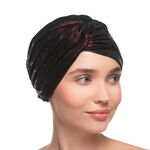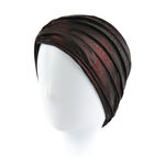 Ruby est un turban chaud avec une doublure légère en fibres de bambou, qui protège le cuir chevelu sensible du froid. Le modèle a été créé à l'aide de matériaux extensibles qui s'adaptent parfaitement à la forme de la tête, tout en offrant un confort de port même pendant de longues périodes. La partie avant du turban est décorée d'une combinaison unique de bandes de tissu, et les nombreux points de suture ajoutent de la volumétrie au turban, créant un look spectaculaire. La palette de couleurs fait référence à l'un des pierres précieuses, le rubis, présentant une couleur rouge vin profond. Ruby est non seulement une solution fonctionnelle, mais aussi élégante pour les jours plus froids.