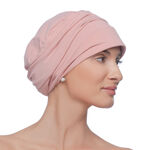 Turban léger et chaud à porter au quotidien. La visière protège contre les rayons solaires intenses. Des fronces décoratives tout autour apportent du volume à l’ensemble. Les matières extensibles permettent au turban d’épouser la forme de la tête sans la comprimer.