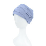 Turban léger et chaud à porter au quotidien. La visière protège contre les rayons solaires intenses. Des fronces décoratives tout autour apportent du volume à l’ensemble. Les matières extensibles permettent au turban d’épouser la forme de la tête sans la comprimer.