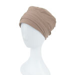 Turban léger et chaud à porter au quotidien. La visière protège contre les rayons solaires intenses. Des fronces décoratives tout autour apportent du volume à l’ensemble. Les matières extensibles permettent au turban d’épouser la forme de la tête sans la comprimer.