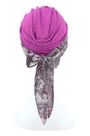 Turban Zanzibar est une proposition de turban particulièrement intéressante : en plus du bonnet de base, le kit comprend deux écharpes à motifs assorties en termes de couleurs, afin que l'ensemble offre la possibilité de choisir librement la composition chaque jour. Vous pouvez porter le turban seul ou ajouter une écharpe. Il est possible de le nouer de différentes manières, par exemple à l'arrière, sur le côté ou sur le front. Grâce à ces possibilités, le turban Zanzibar permet une approche très créative de votre garde-robe, s'adapte à chaque tenue et s'amuse avec l'image. En même temps, un confort complet est assuré, ainsi qu'une tenue sûre du turban sur la tête tout au long du temps.