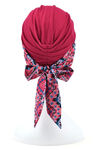 Turban Zanzibar est une proposition de turban particulièrement intéressante : en plus du bonnet de base, le kit comprend deux écharpes à motifs assorties en termes de couleurs, afin que l'ensemble offre la possibilité de choisir librement la composition chaque jour. Vous pouvez porter le turban seul ou ajouter une écharpe. Il est possible de le nouer de différentes manières, par exemple à l'arrière, sur le côté ou sur le front. Grâce à ces possibilités, le turban Zanzibar permet une approche très créative de votre garde-robe, s'adapte à chaque tenue et s'amuse avec l'image. En même temps, un confort complet est assuré, ainsi qu'une tenue sûre du turban sur la tête tout au long du temps.