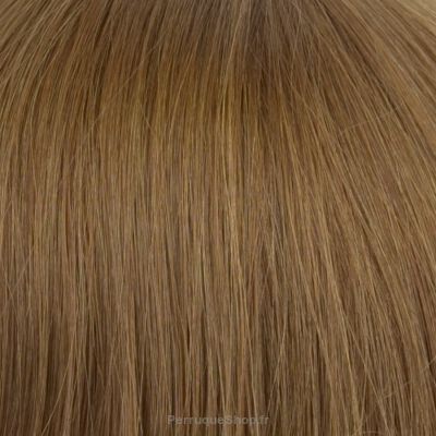 Le modèle, sur fond blanc, porte une perruque de 6/8/10R+14/16. Vous achetez une perruque dans la couleur affichée dans le carré à côté de la photo principale du produit.